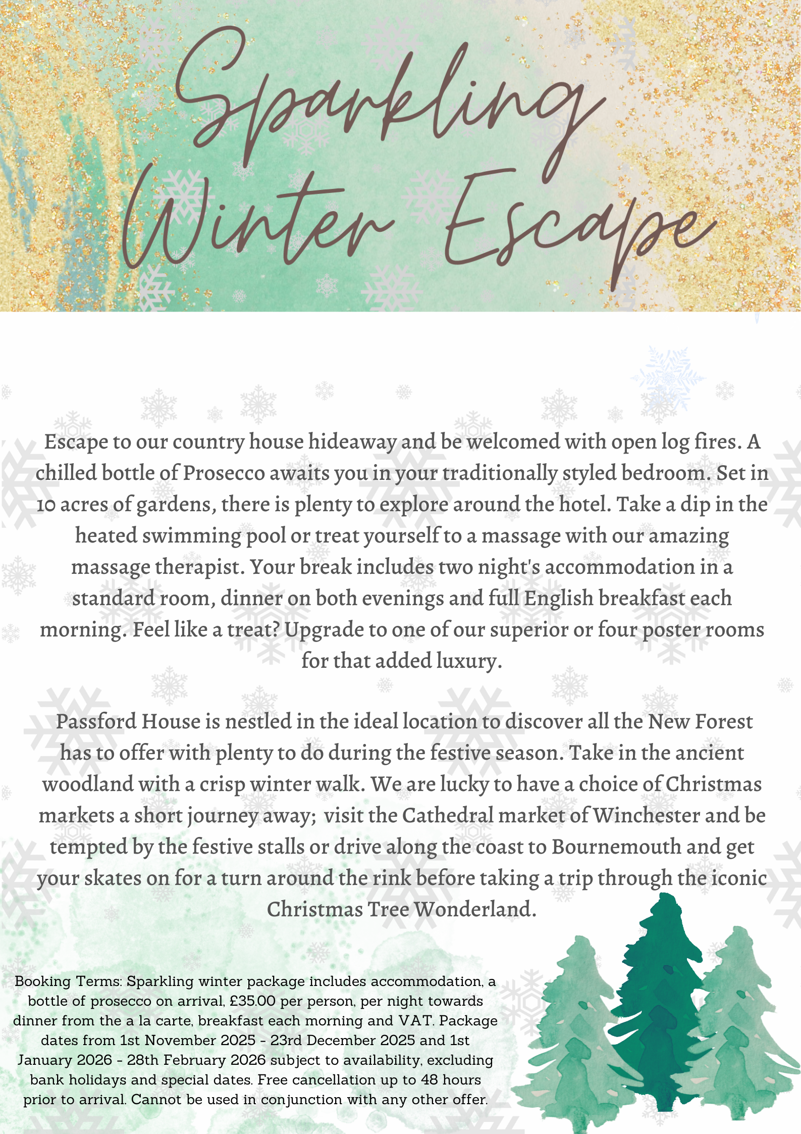 Inclusive of accommodation, breakfast & VAT. Offer is available between 1st October 2025 and 23rd December 2025. 1st January 2026 to 31st March 2026.