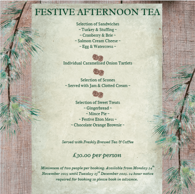 Enjoy a cosy afternoon filled with delicious festive flavours, freshly brewed tea or coffee, and the warm charm of Passford House.